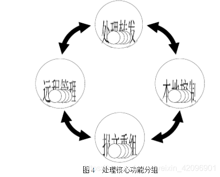 如图4所示,网络处理器的众多核心分别位于上述不同的工作组中,在系统初始化时根据初始化参数确定其默认工作组,同时,在系统运行时,也可通过系统控制平面动态调整各工作组中核心数量,满足不同的网络状况需求。
