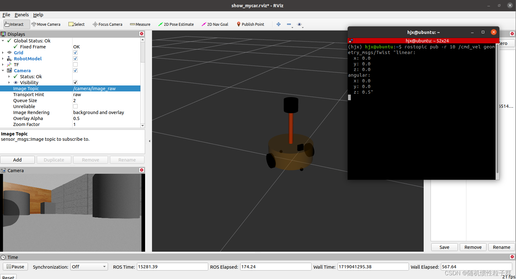 再设置Camera中的Topic为/camera/image_raw,可以发现: