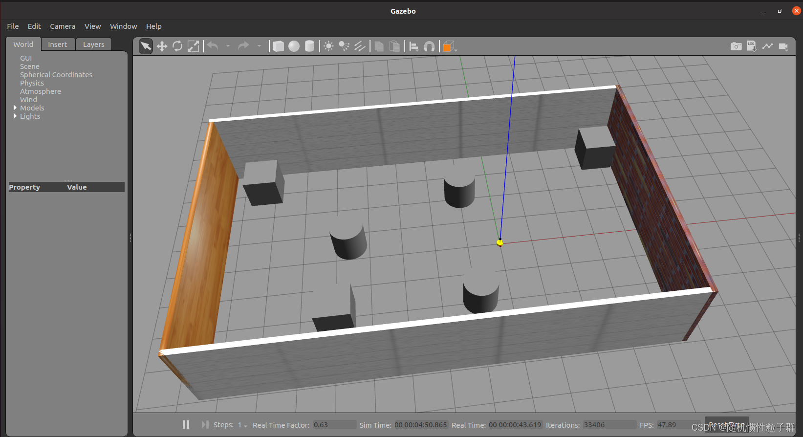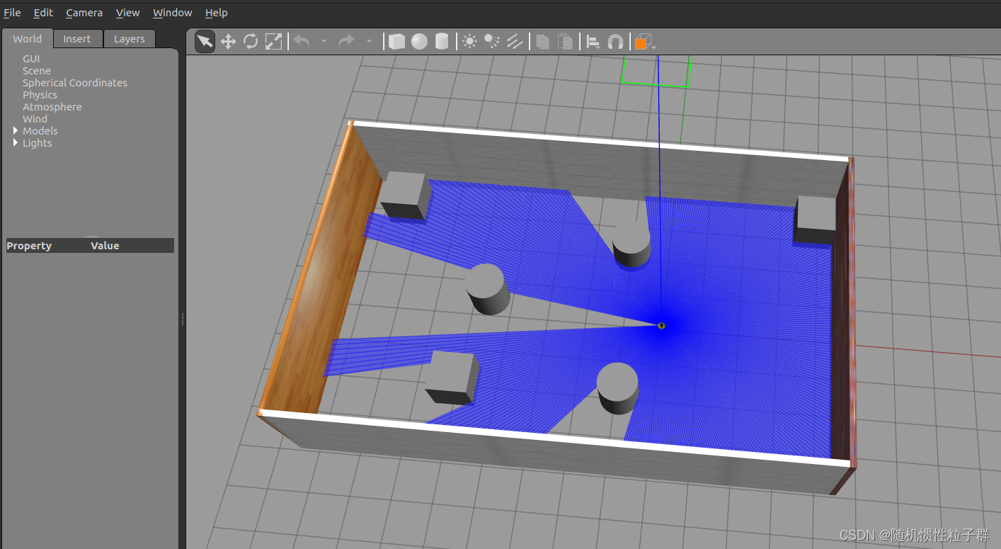 通过 Gazebo 模拟kinect摄像头,并在 Rviz 中显示kinect摄像头数据。