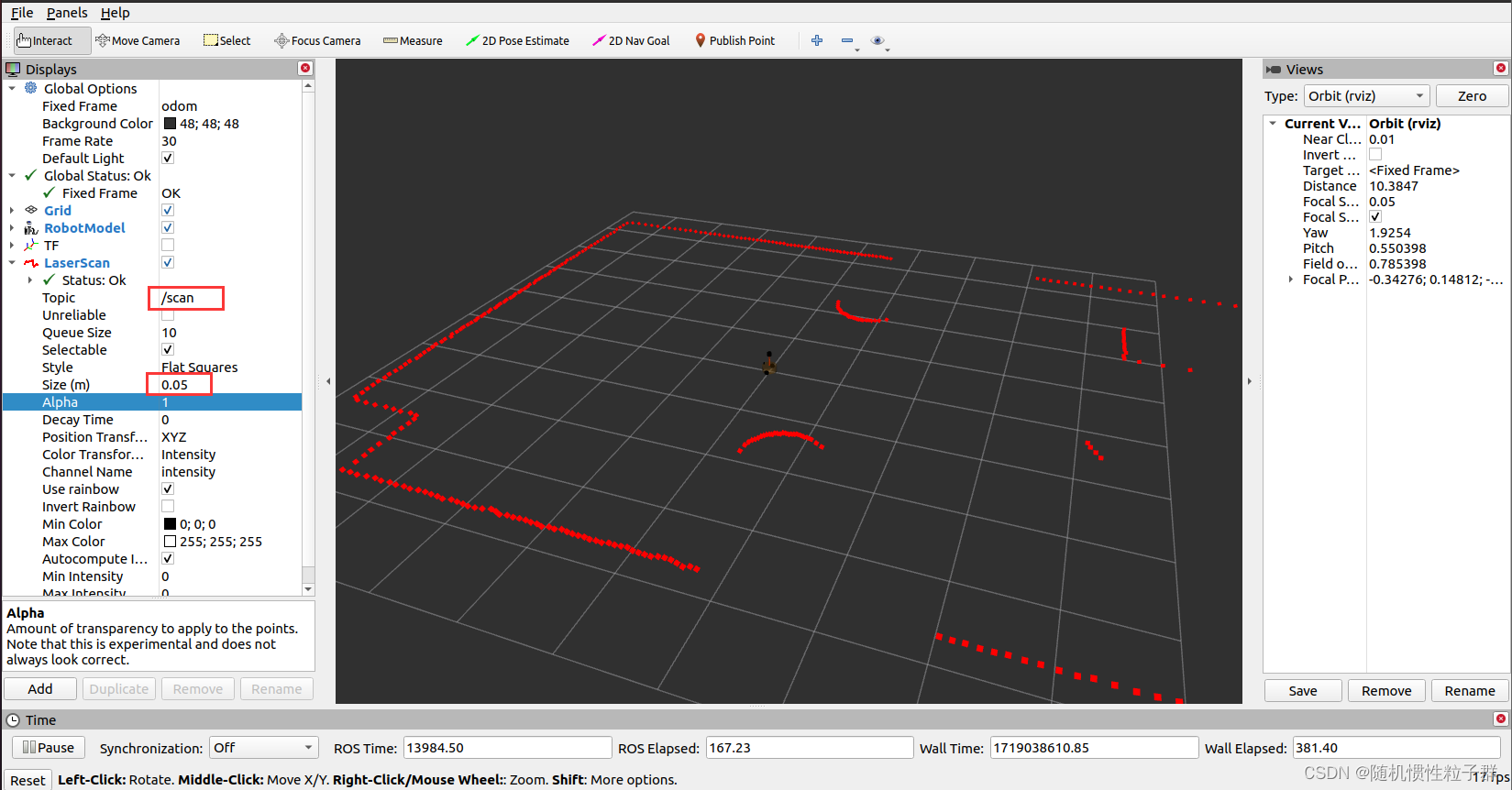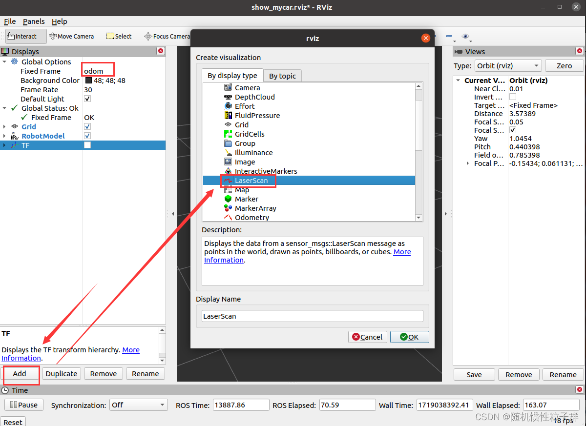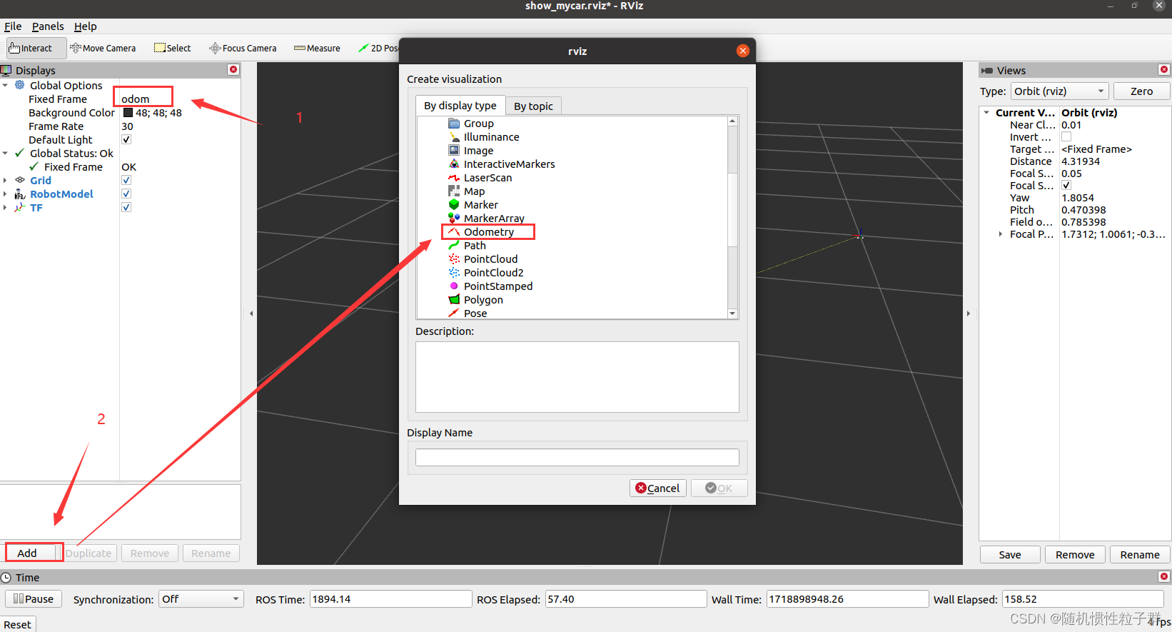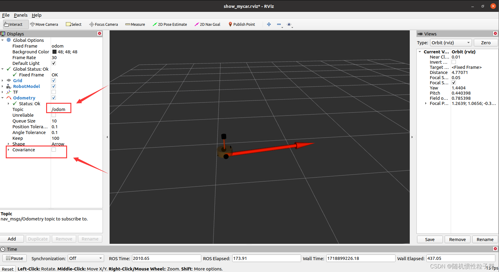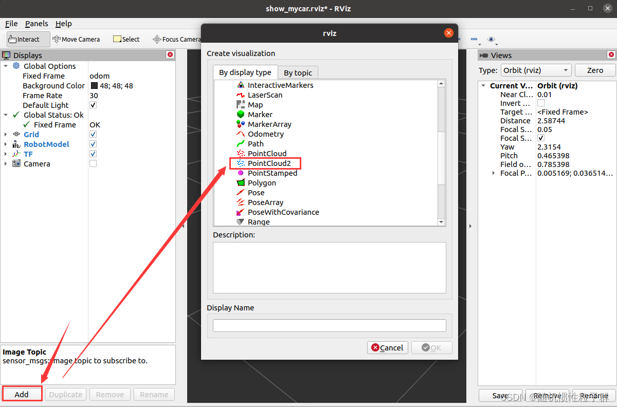 将rviz中的Fixed Frame 设置为 odom , 在Add添加PointCloud2: