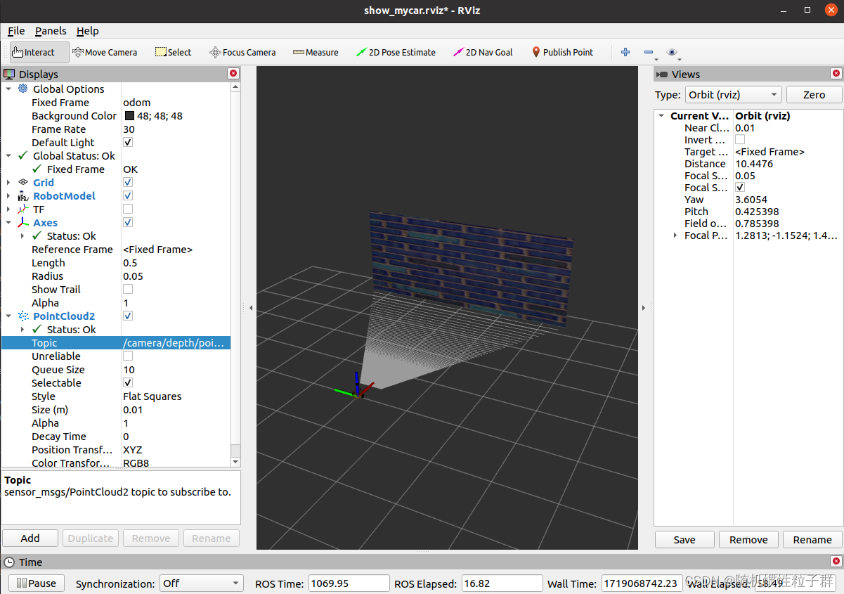 再设置PointCloud2中的Topic为/camera/depth/points,可以发现: