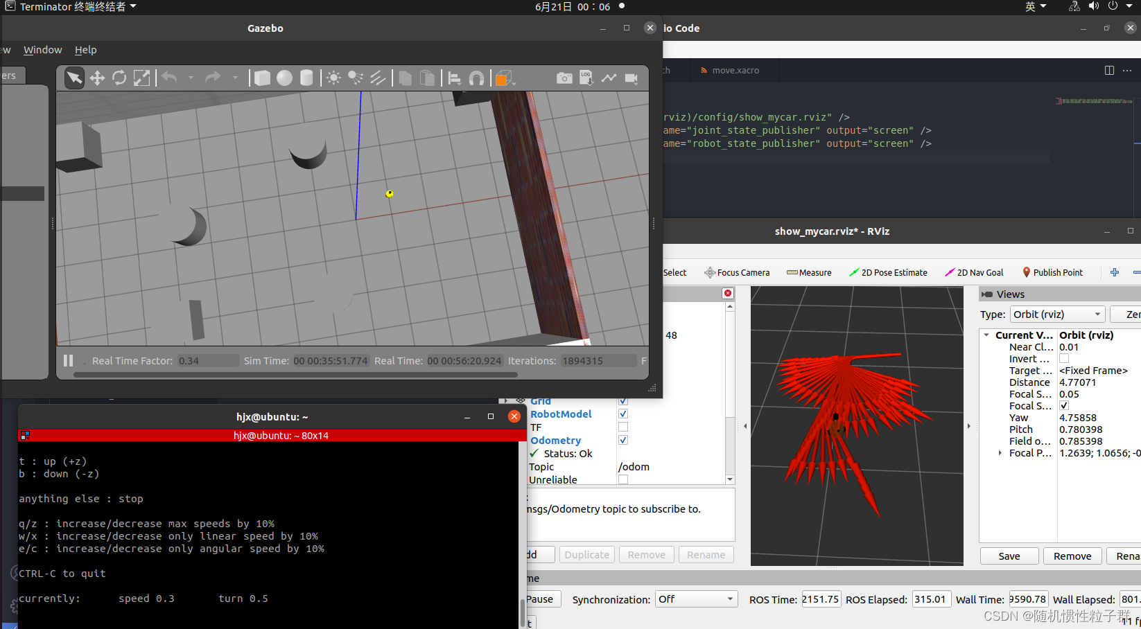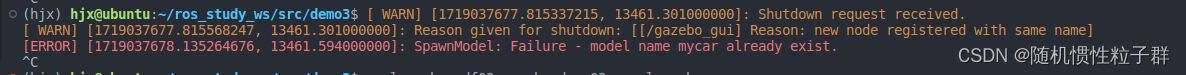 有遇到报错的话,需要重新运行一下launch文件,在gazebo中把小车模型删除,关闭,在重新运行launch文件,正常的终端提示如下: