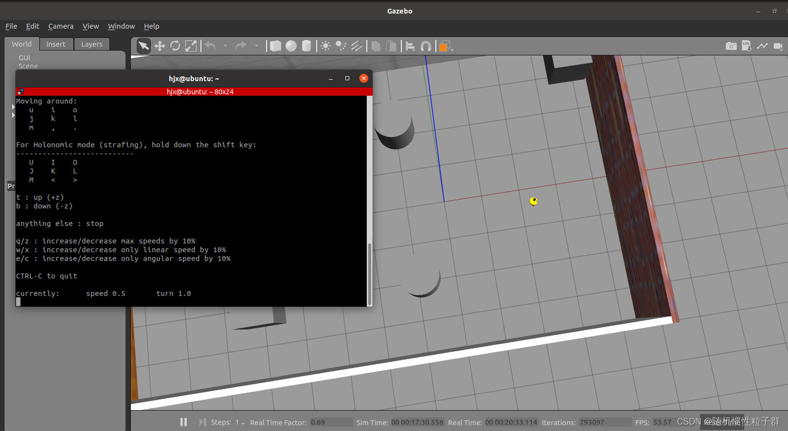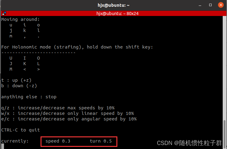 下面我们试试利用键盘控制机器人运动,继续输入终端指令: