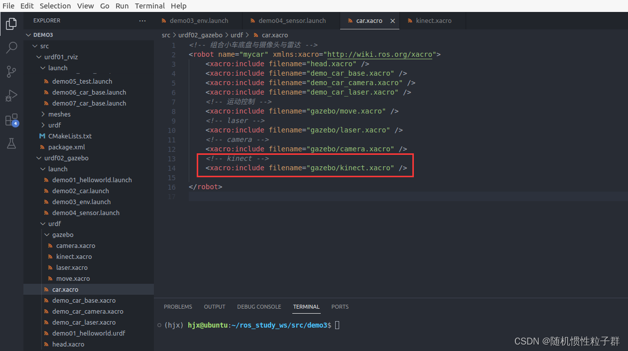 1.1 新建 Xacro 文件,配置 kinetic传感器信息