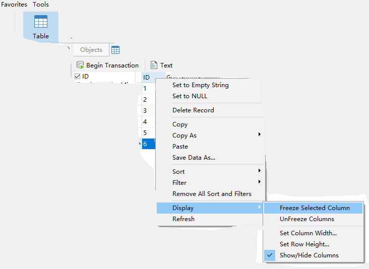 1.隐藏掉主键列,这时候就可以复制粘贴了,如下图Show,Hide Column