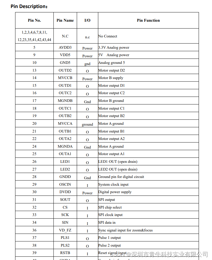 芯片特点: 内置2个STM驱动器,用于变焦和对焦