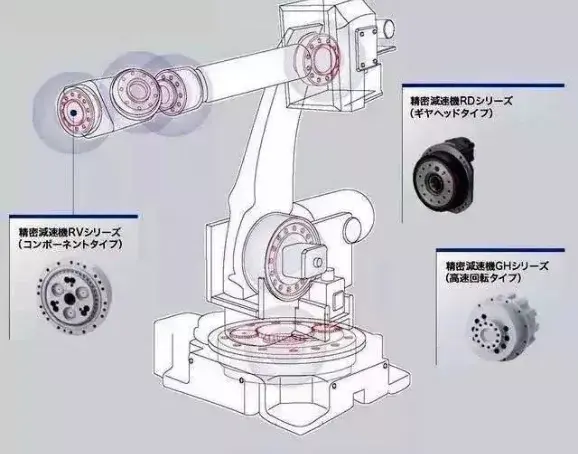 下面介绍工业机器人核心精密零部件:减速器,与通用减速器相比,机器人用减速器要求具有传动链短、体积小、功率大、质量轻和易于控制等特点。减速器行业,我们不得不提这行业两巨头是Nabtesco(帝人,也叫纳博特斯克)和Hamonica Drive(哈默纳科),业界俗称(RV减速器和谐波减器)。他们几乎垄断了全球的机器人用减速器。这两种减速器都是微米级的加工精度,光这一条在量产阶段可靠性高就很难了,更别说几千转的高速运转,而且还要高寿命。目前市面上的大量应用在工业机器人上的减速器主要有两类:RV减速器和谐波减速器。RV减速器:是少齿差啮合,但相对于谐波减速器,RV减速器通常用的是摆线针轮,RV减速器由摆线针轮和行星支架组成。相比谐波减速器,RV减速器的关键在于加工工艺和装配工艺。RV减速器具有更高的疲劳强度、刚度和寿命,不像谐波传动那样随着使用时间增长,运动精度会显著降低,其缺点是重量重,外形尺寸较大。RV减速器用于转矩大的机器人腿部腰部和肘部三个关节,负载大的工业机器人,一二三轴都是用RV减速器。它较机器人中常用的谐波传动具有高得多的疲劳强度、刚度和寿命,而且回差精度稳定,不像谐波传动那样随着使用时间增长运动精度就会显著降低,故世界上许多国家高精度机器人传动多采用RV减速器,因此,该种RV减速器在先进机器人传动中有逐渐取代谐波减速器的发展趋势。