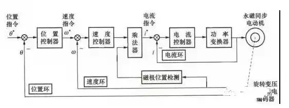 2、交流伺服电机的优点和缺点优点:速度控制特性良好,在整个速度区内可实现平滑控制,几乎无振荡,90%以上的高效率,发热少,高速控制,高精确度位置控制(取决于编码器精度),额定运行区域内,可实现恒力矩,惯量低,低噪音,无电刷磨损,免维护(适用于无尘、易爆环境)。缺点:控制较复杂,驱动器参数需要现场调整PID参数确定,需要更多的连线。目前主流的伺服驱动器均采用数字信号处理器(DSP)作为控制核心,可以实现比较复杂的控制算法,实现数字化、网络化和智能化。功率器件普遍采用以智能功率模块(IPM)为核心设计的驱动电路,IPM内部集成了驱动电路,同时具有过电压、过电流、过热、欠压等故障检测保护电路,在主回路中还加入软启动电路,以减小启动过程对驱动器的冲击。功率驱动单元首先通过三相全桥整流电路对输入的三相电或者市电进行整流,得到相应的直流电。经过整流好的三相电或市电,再通过三相正弦PWM电压型逆变器变频来驱动三相永磁式同步交流伺服电机。功率驱动单元的整个过程可以简单的说就是AC-DC-AC的过程。整流单元(AC-DC)主要的拓扑电路是三相全桥不控整流电路。