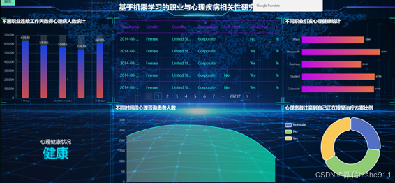 综上所述,基于机器学习的职业与心理疾病相关性研究具有重要的现实意义。通过机器学习技术的应用,我可以更好地理解职业与心理疾病之间的关联规律,实现对个体心理疾病的早期预测和干预,并为临床治疗提供科学依据。在未来,希望有更多的研究者和工程师致力于这一领域的研究,为改善职场人群的心理健康状况做出贡献。