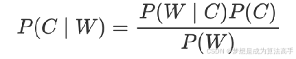 其中,P(C) 表示C发生的概率,一般是目标值,P(W|C)表示C条件W出现的概率,P(W)表示W出现的概率。