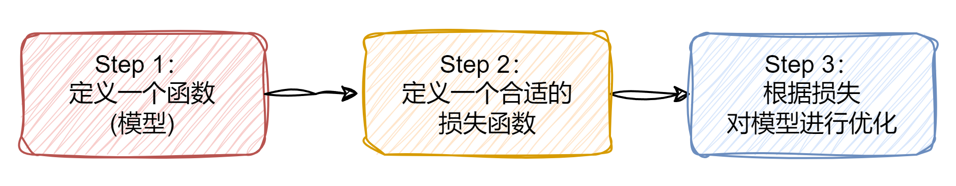 我们先根据数据,大致定义一个函数,显然这个函数和实际的映射关系(函数)是有一定差距的,因此我们定义一个合适的损失函数,这个损失函数用来衡量我们定义的函数和实际结果之间存在的差距大小,然后我们根据差距对定义的函数进行优化,使得定义的函数逐渐接近实际的映射关系。