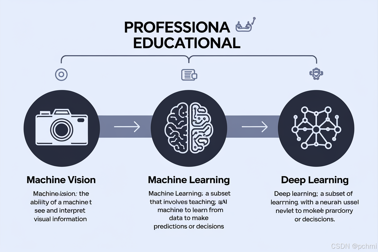 在当今数字化浪潮汹涌澎湃的时代,人工智能无疑是最耀眼的那颗明星,而机器视觉、机器学习和深度学习则宛如三驾并驾齐驱的华丽马车,在 AI 的广阔天地中纵情驰骋,各自绽放着独特的光芒,却又常常让初涉此道的人陷入 “乱花渐欲迷人眼” 的困惑之中。今天,就让我们以一种轻松诙谐却又不失专业技术范儿的方式,深入探究一下这三位 “大咖” 的奇妙世界,瞧瞧它们之间那些千丝万缕的联系与泾渭分明的差异。