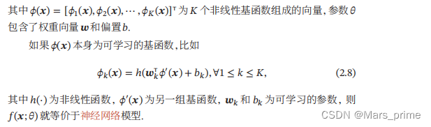 广义的非线性模型可以写为多个非线性基函数𝜙(𝒙)的线性组合
