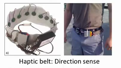 第三个例子是触觉皮带,如果你把它戴在腰上,蜂鸣器会响,而且总是朝向北时发出嗡嗡声。它可以使人拥有方向感,用类似于鸟类感知方向的方式。