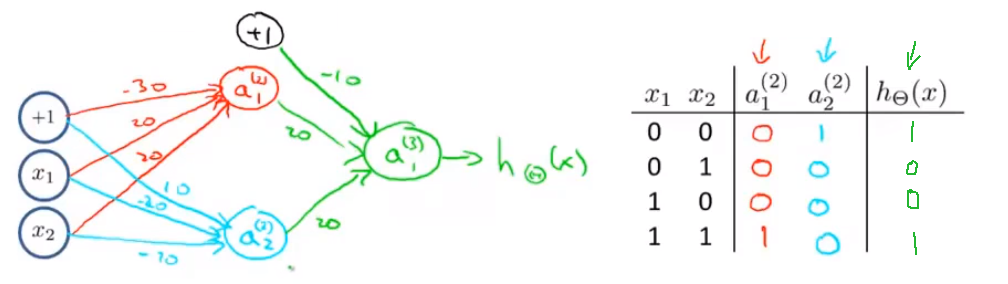 我们就得到了一个能实现 XNOR \text{XNOR} XNOR 运算符功能的神经网络。