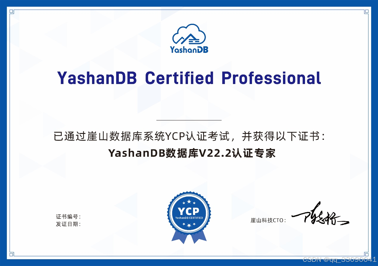YCP认证面向已通过YCA认证的学员,适合具备1年以上数据库实战经验的数据库管理员、应用开发人员、架构师等数据库从业者,帮助学员熟练掌握YashanDB的SQL优化、用户管理、对象管理、数据安全、运维监控、备份恢复内容,笔试考试还是比较难一些的需要完全掌握相关知识点。实操对于oracle dba来说比较友好。