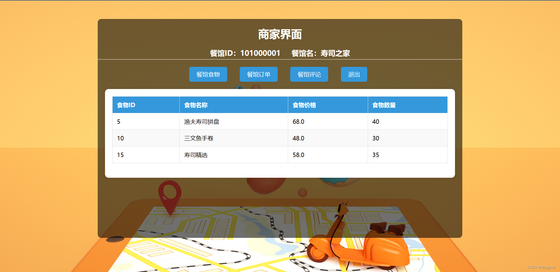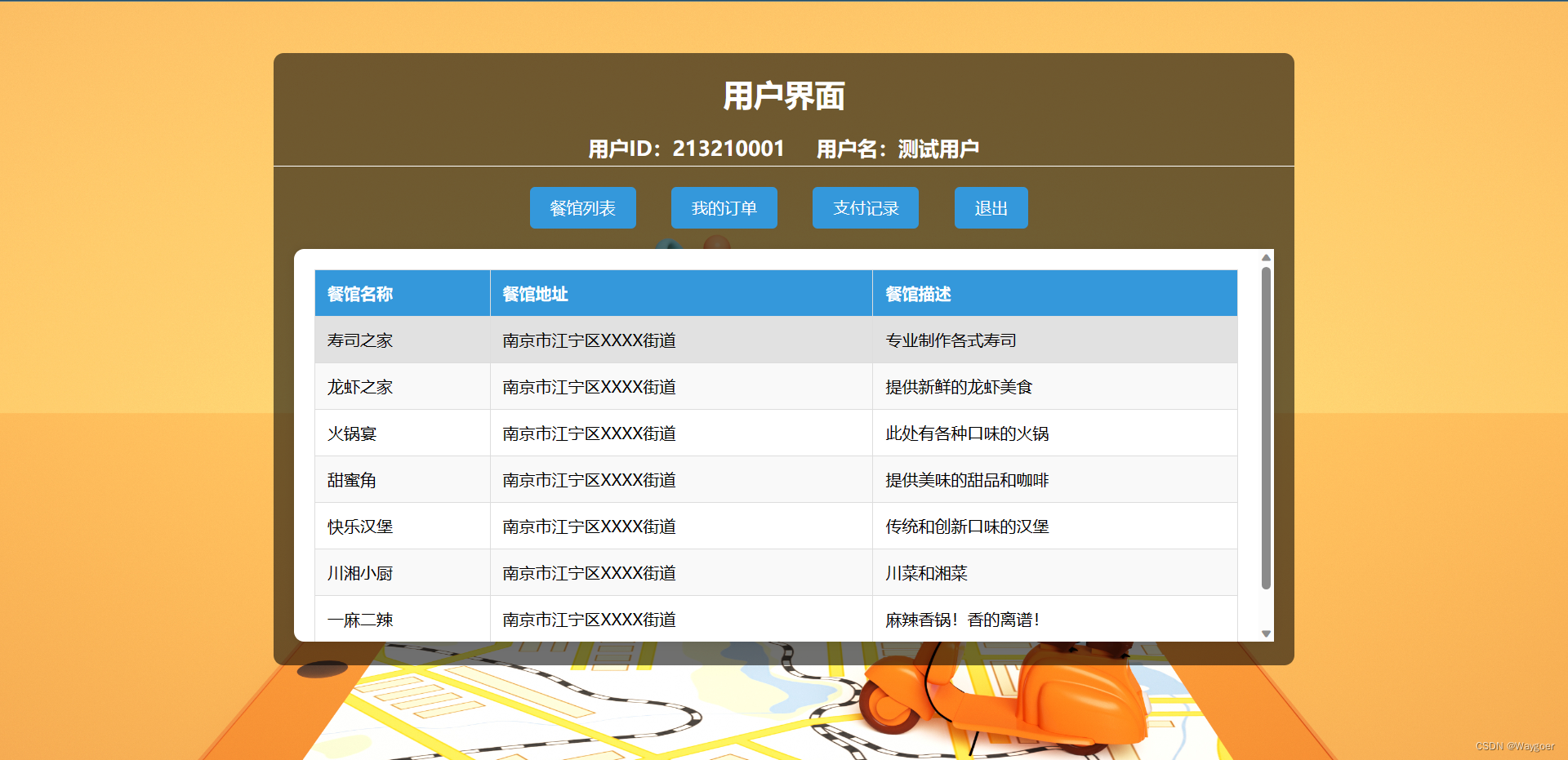 (1)餐馆列表——可用于查看所有的餐馆信息,如下图