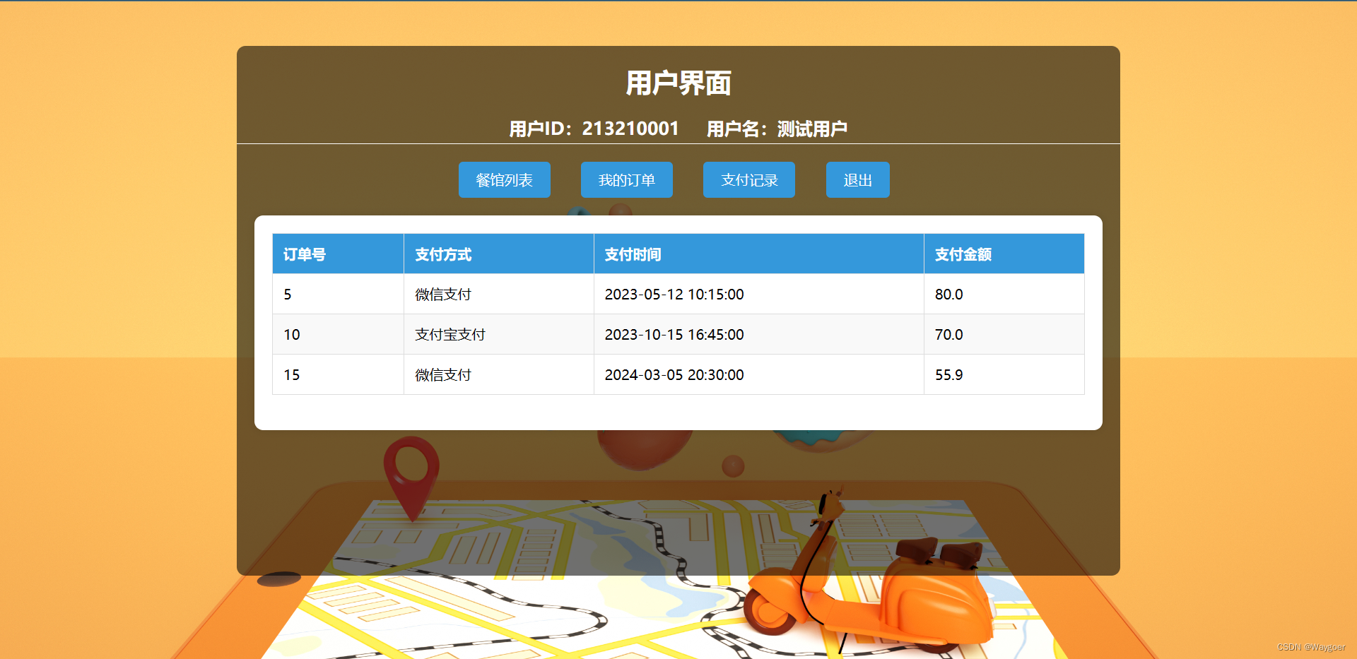 (3)支付记录——可用于查看该用户对于所有订单的支付记录,如下图