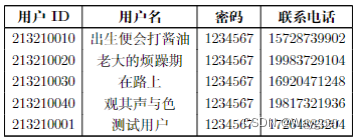 示例一:用户(用户ID,用户名,密码,联系电话)