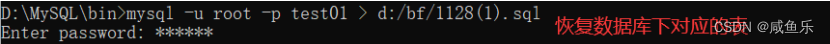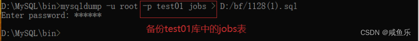 说明: -u 用户名 -h 主机,如果是本机省略 -p test 要备份的库