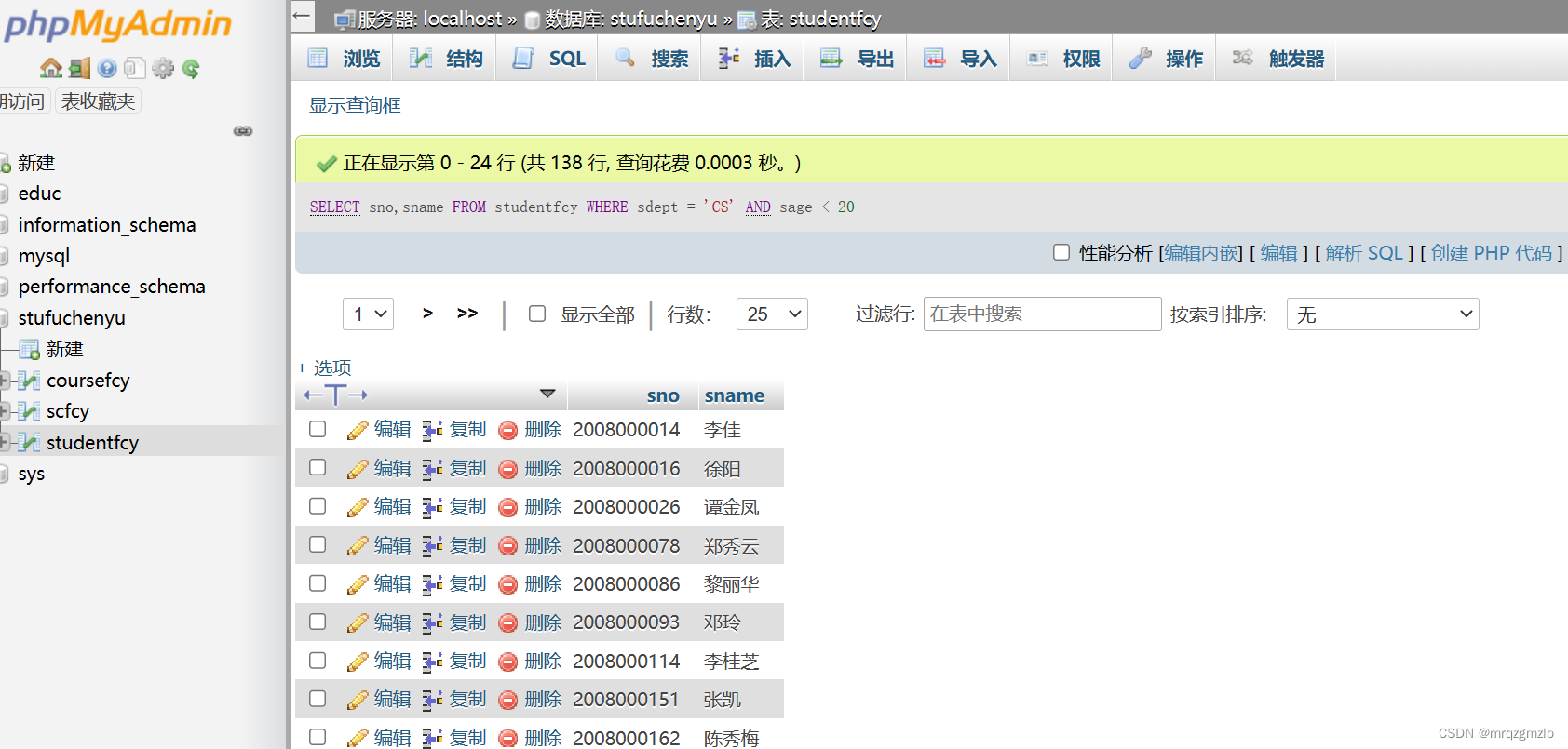 sno,sname,sdept,sage