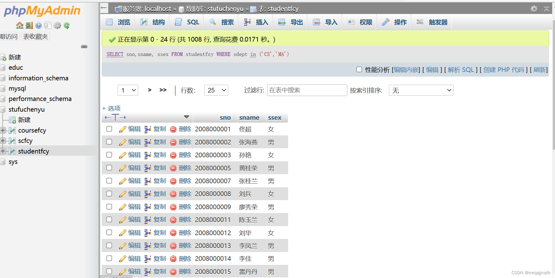 FROM studentfcy