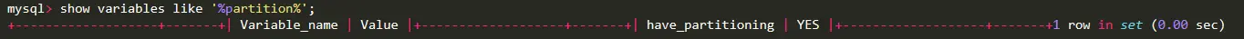 命令:show variables like ‘%partition%’ 运行结果: