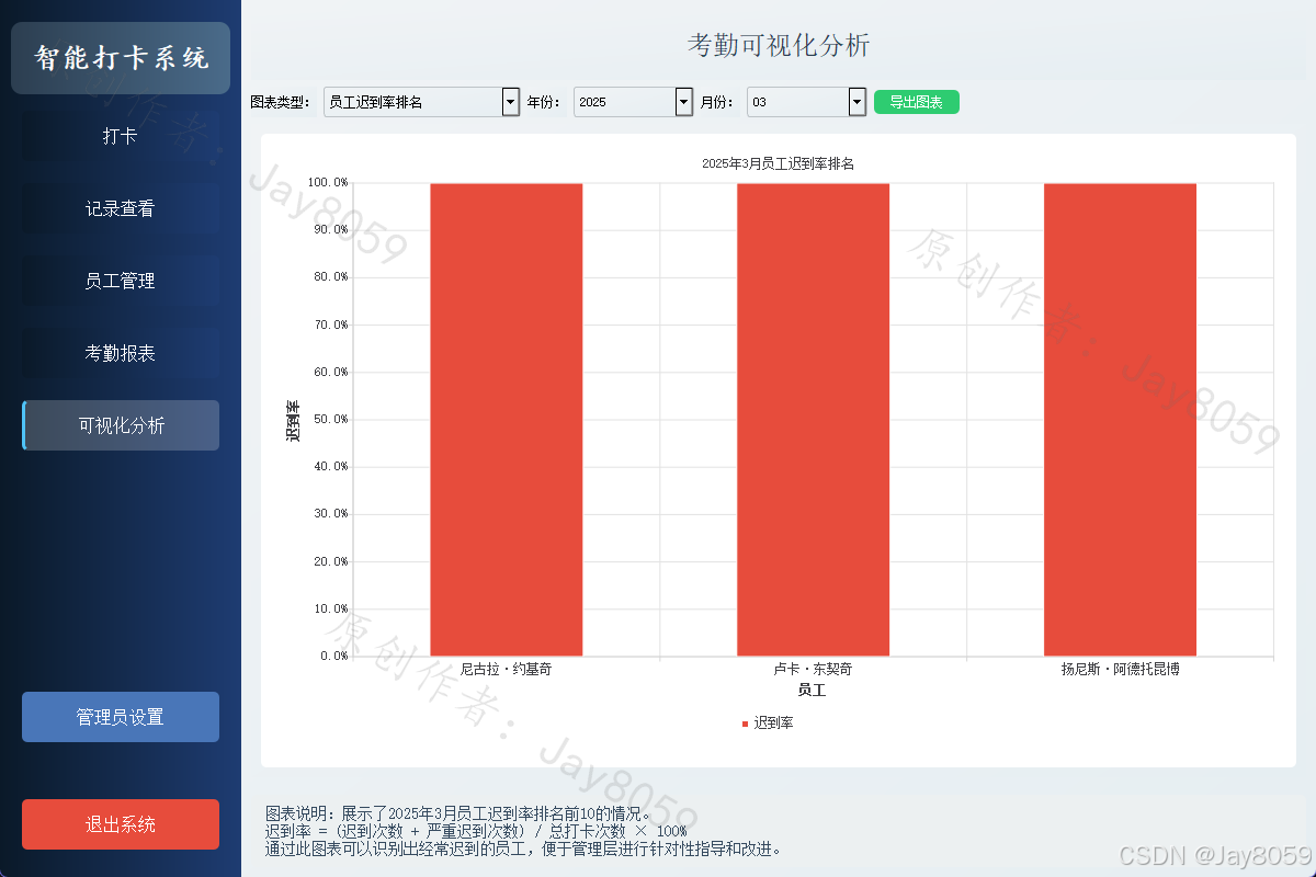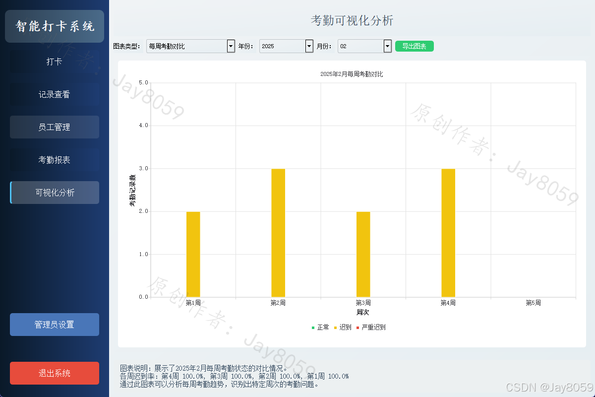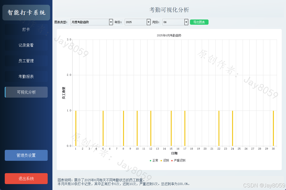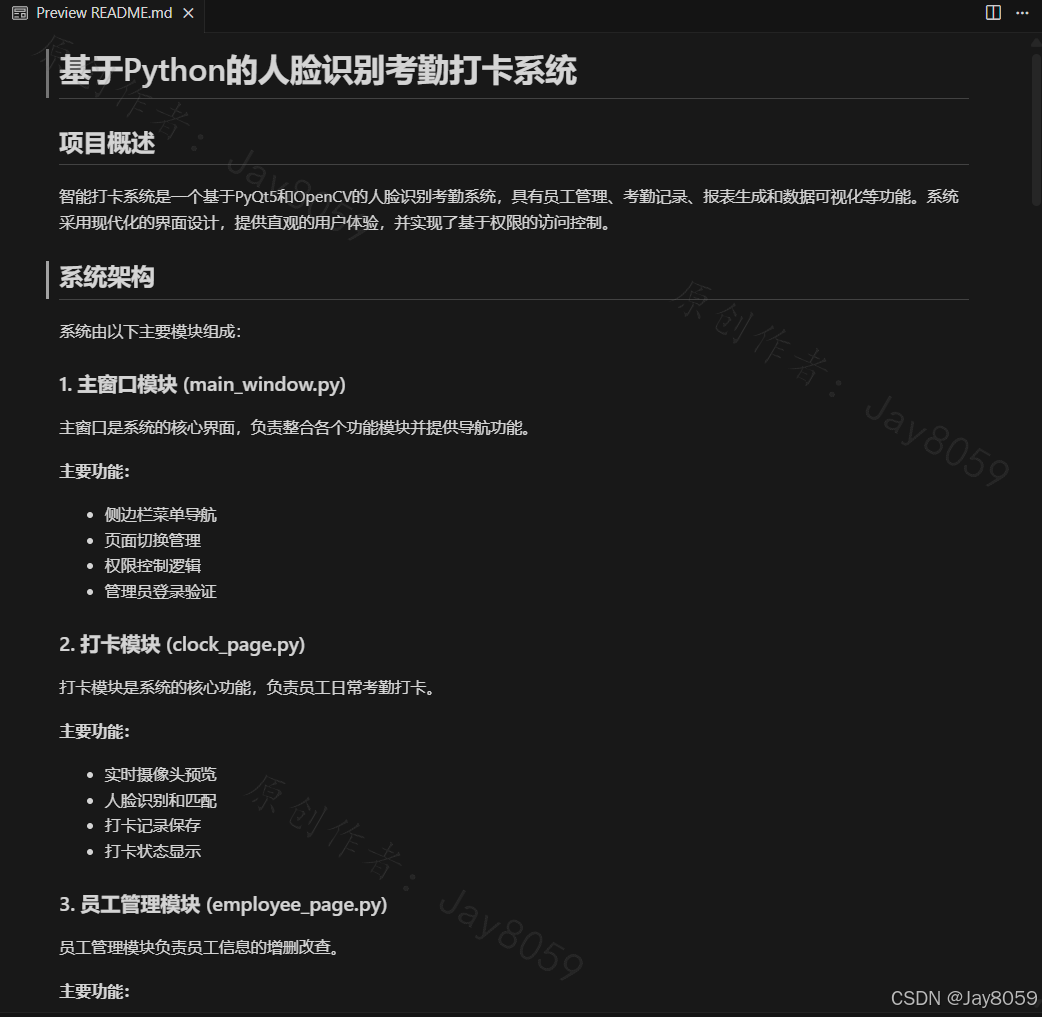 基于Python、PyQt5和OpenCV的人脸识别考勤系统,具有打卡、员工管理、考勤记录和报表生成等功能。