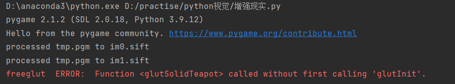 在查阅网络上提供的资料后,下载了pygame和pyopengl的64位版本,实验仍然报错,将python环境转为anaconda,这时又出现了