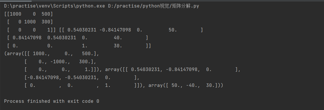 因为RQ因子分解的结果并不唯一,其结果往往存在着符号二义性,故需要限制旋转矩阵R为正定的,上面的代码中做到了这一点,因此我们可以看到其输出结果与输入并不一致。
