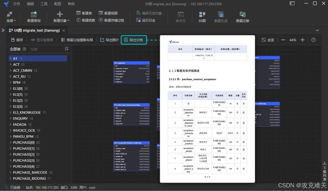 达梦数据库实战:轻松生成ER图并导出表设计文档