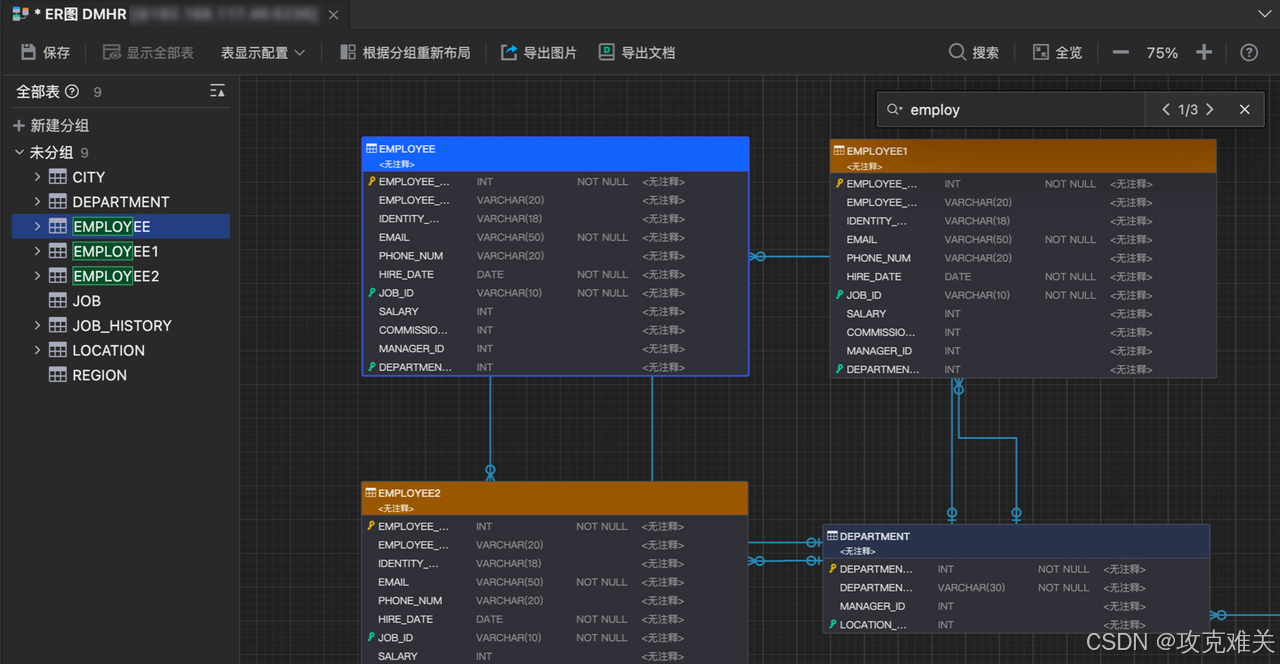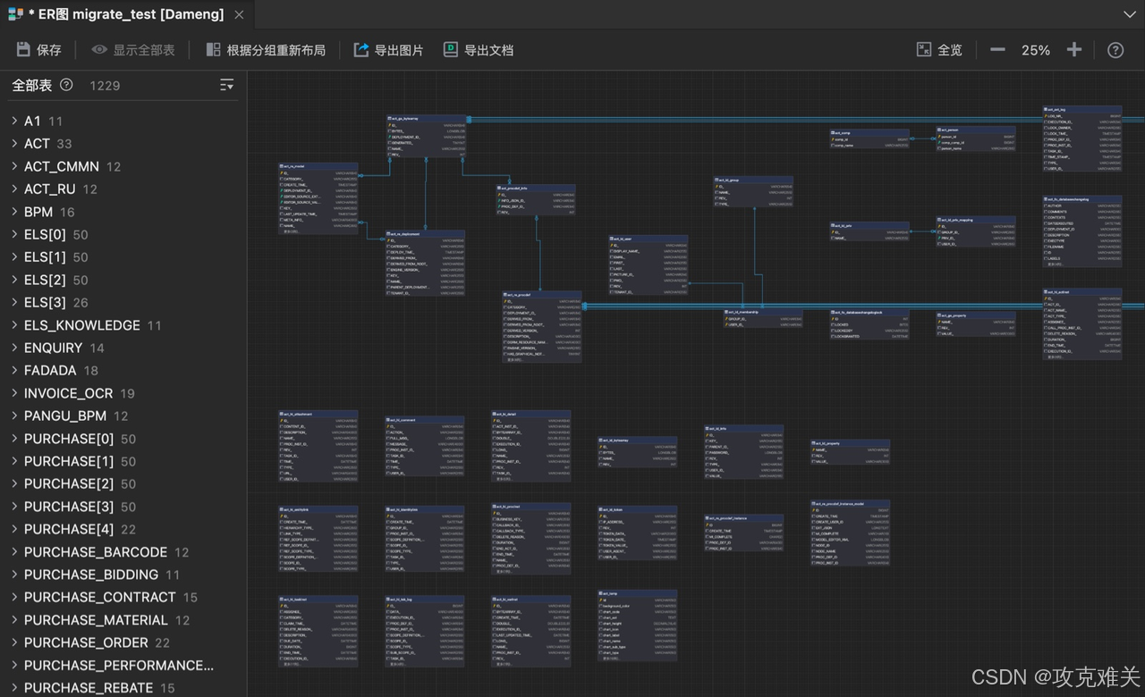 ER图也称实体-联系图,提供了表示实体类型、属性和联系的方法,开发的时候往往需要有ER图,本文主要介绍使用达梦新推出的SQLark实现生成er图,并导出为表设计文档,不仅如此,SQLark还支持自动智能分组、搜索定位、图片导出等功能,重点是免费获取!这里附上SQLark下载链接:www.sqlark.com 。