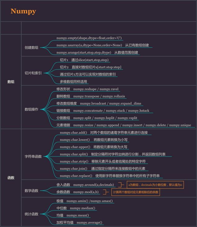 **·Numpy函数:**字符串函数、数学函数、统计函数