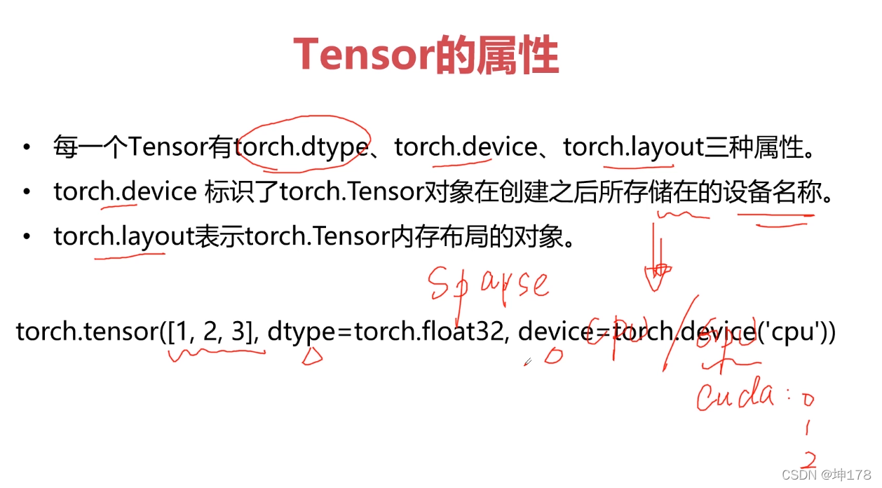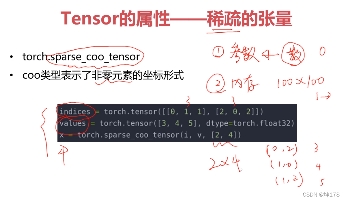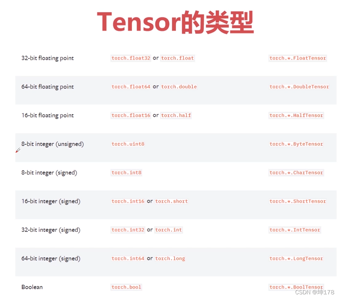 目录1.Tensor的类型2.Tensor的创建方式(初始化)3.Tensor的定义过程代码演示4.Tensor的属性5.稀疏的张量5.1 简介5.2 代码实现1.Tensor的类型2.Tensor的创建方式(初始化)3.Tensor的定义过程代码演示import torch# 直接定义并赋值Tensora = torch.Tensor([[1, 2], [3, 4]])print(a)print