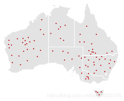 - 点示地图 (Dot Map) 在地理区域上放置相等大小的圆点,旨在检测该地域上的空间布局或数据分布。