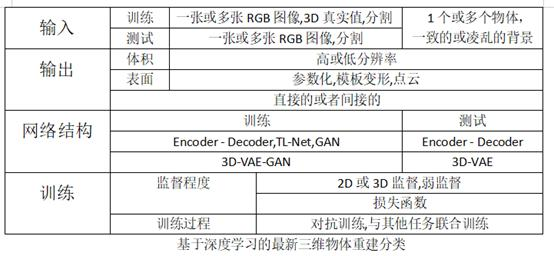 本综述根据输入 I 的性质、输出的表示、训练和测试期间用于近似预测器f的神经网络结构、它们使用的训练过程及其监督程度,讨论并分类了最新的技术,可视化总结见下表。