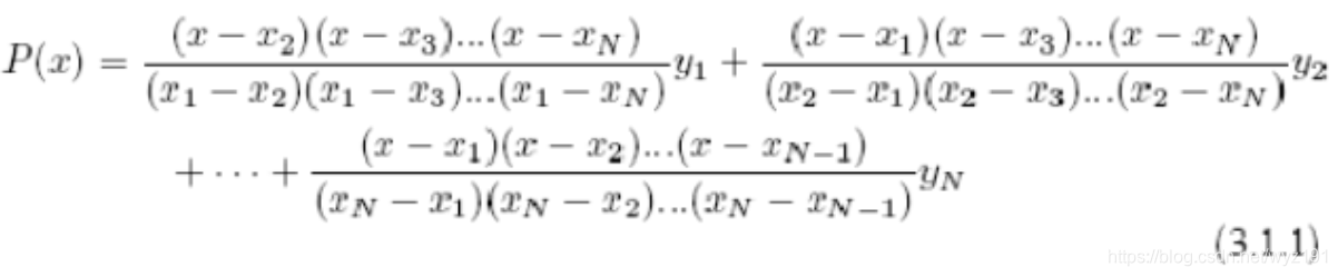 数学上有一个Lagrange 多项式公式,它可以由n 对 (x,y) 值唯一决定 n-1 阶多项式,且公式非常好记,如课文中的式(3.1.1)