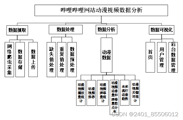 本文主要探讨了基于大数据的哔哩哔哩网站动漫视频数据分析系统的设计与实现。随着互联网的普及和动漫产业的兴起,哔哩哔哩已经成为国内最大的动漫视频分享平台之一,其上的动漫视频数据量也日益庞大。因此,为了更好地挖掘这些数据的价值,本文提出了一种基于大数据技术的哔哩哔哩网站动漫视频数据分析系统。