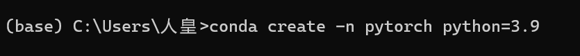 2.创建一个虚拟环境(输入conda create -n pytorch python=3.9)(python不需要太高版本,但也不要低于3.9)