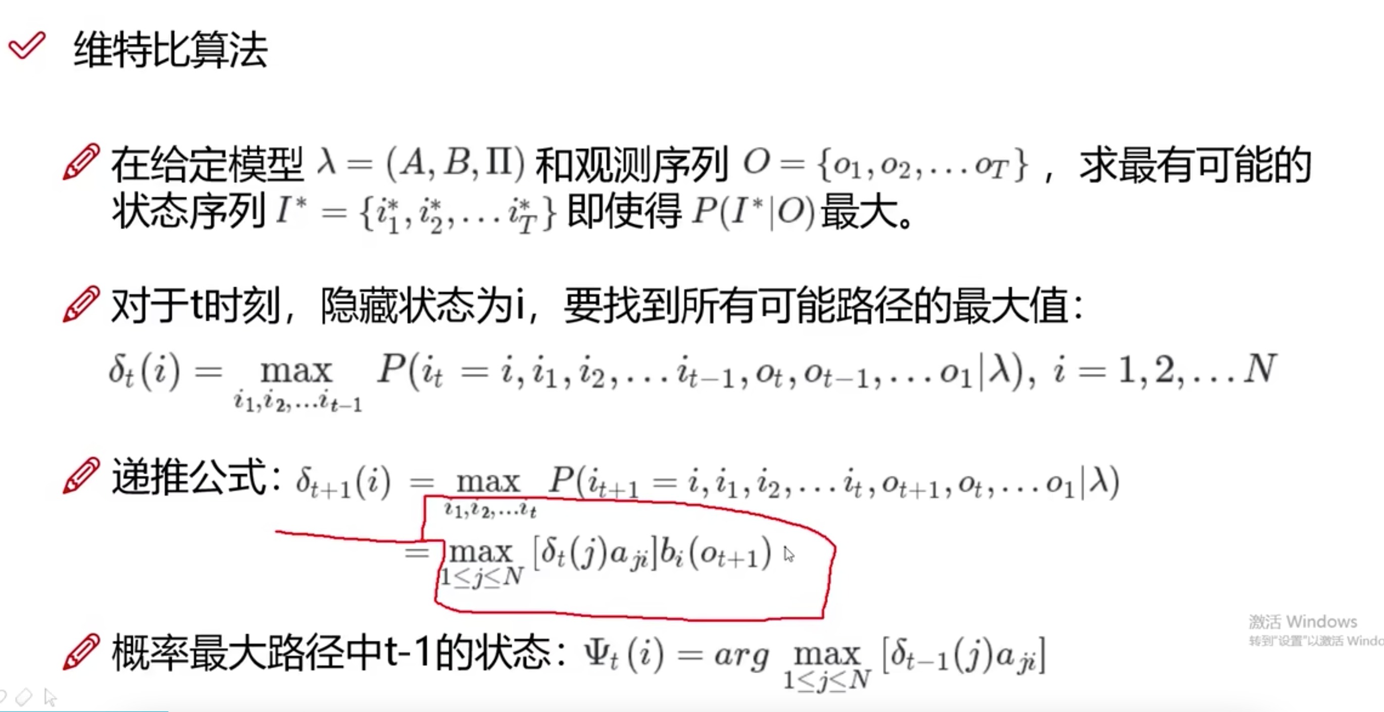 - 所以我们要引入动态规划,去找到这个最大联合概率的假设(隐含序列),那样我们就能求出观察序列出现的概率【这段是我的瞎扯,可能理解错了,不需要看,要求第一个研究内容的话应该是用前向算法,第二个内容用动态规划】