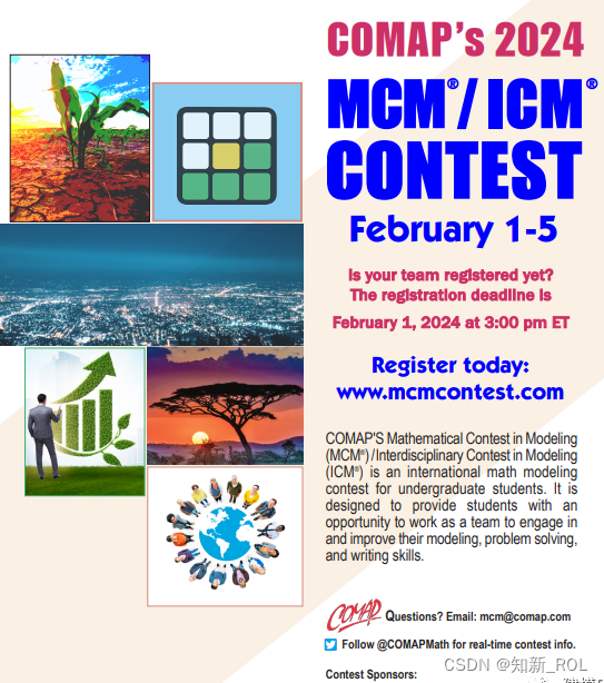 2024MCM/ICM竞赛时间为 February 1-5, 2024(美国东部时间),换算成北京时间为2024年2月2日-6日举行