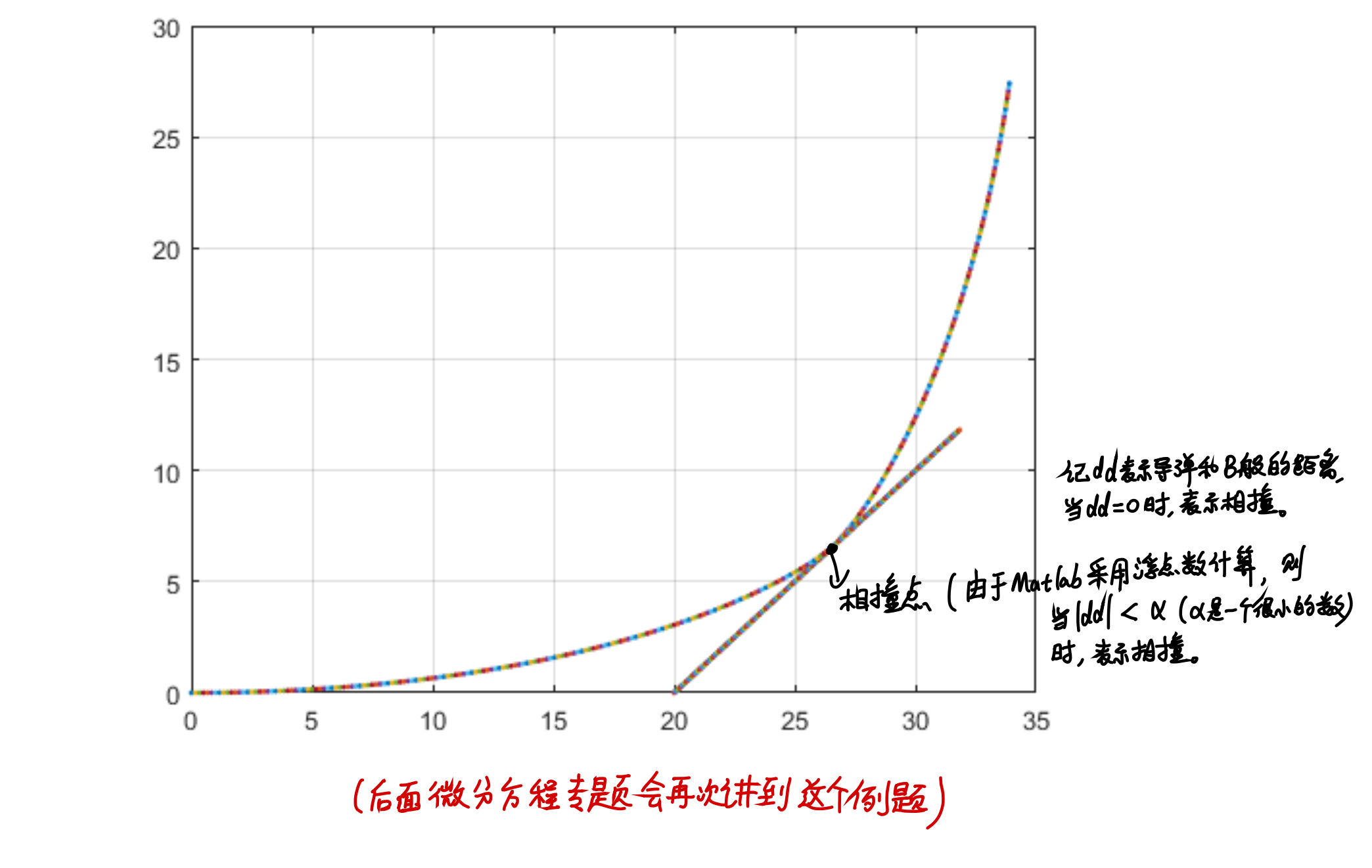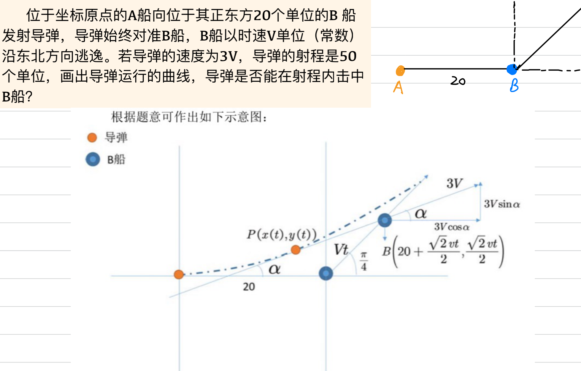 x(2)=20+t*v*m; y(2)=t*v*m; % 计算新的B船的位置 (注:m=sqrt(2)/2)