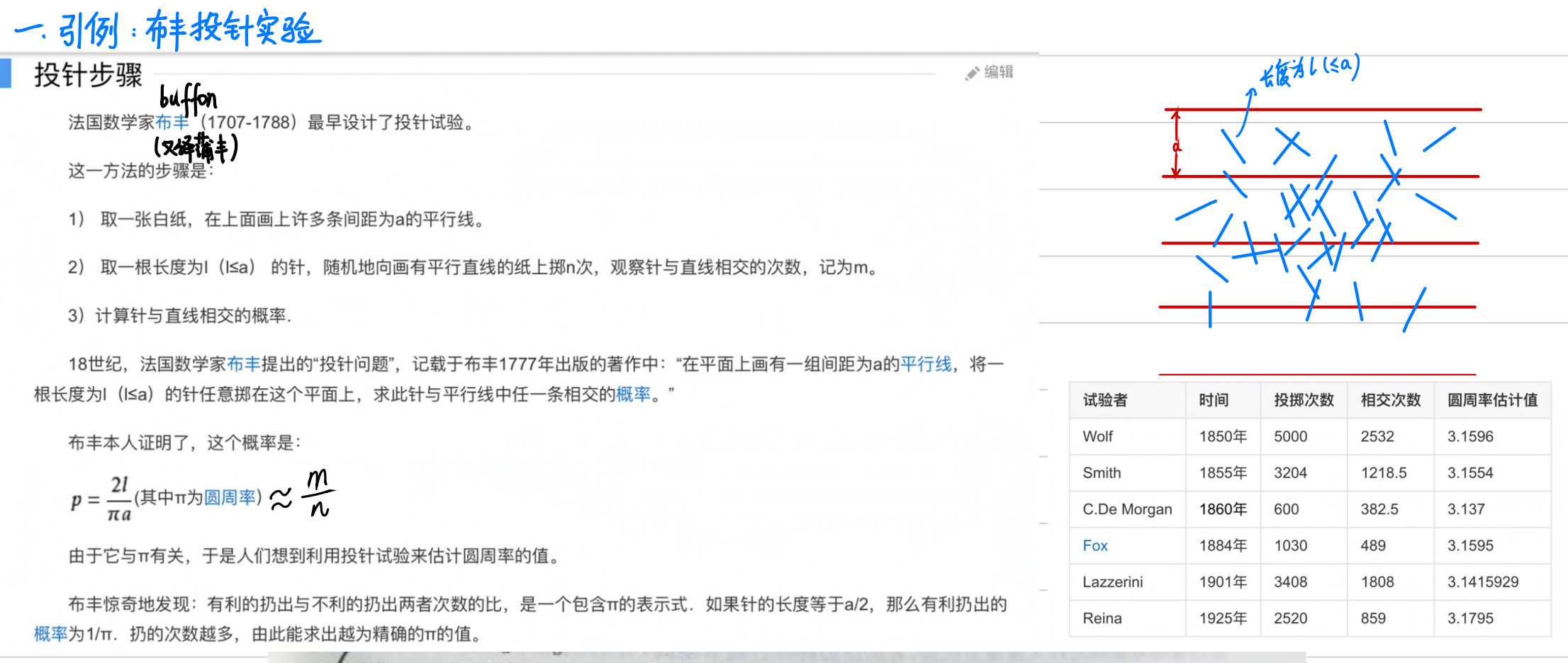 引例:布丰投针实验