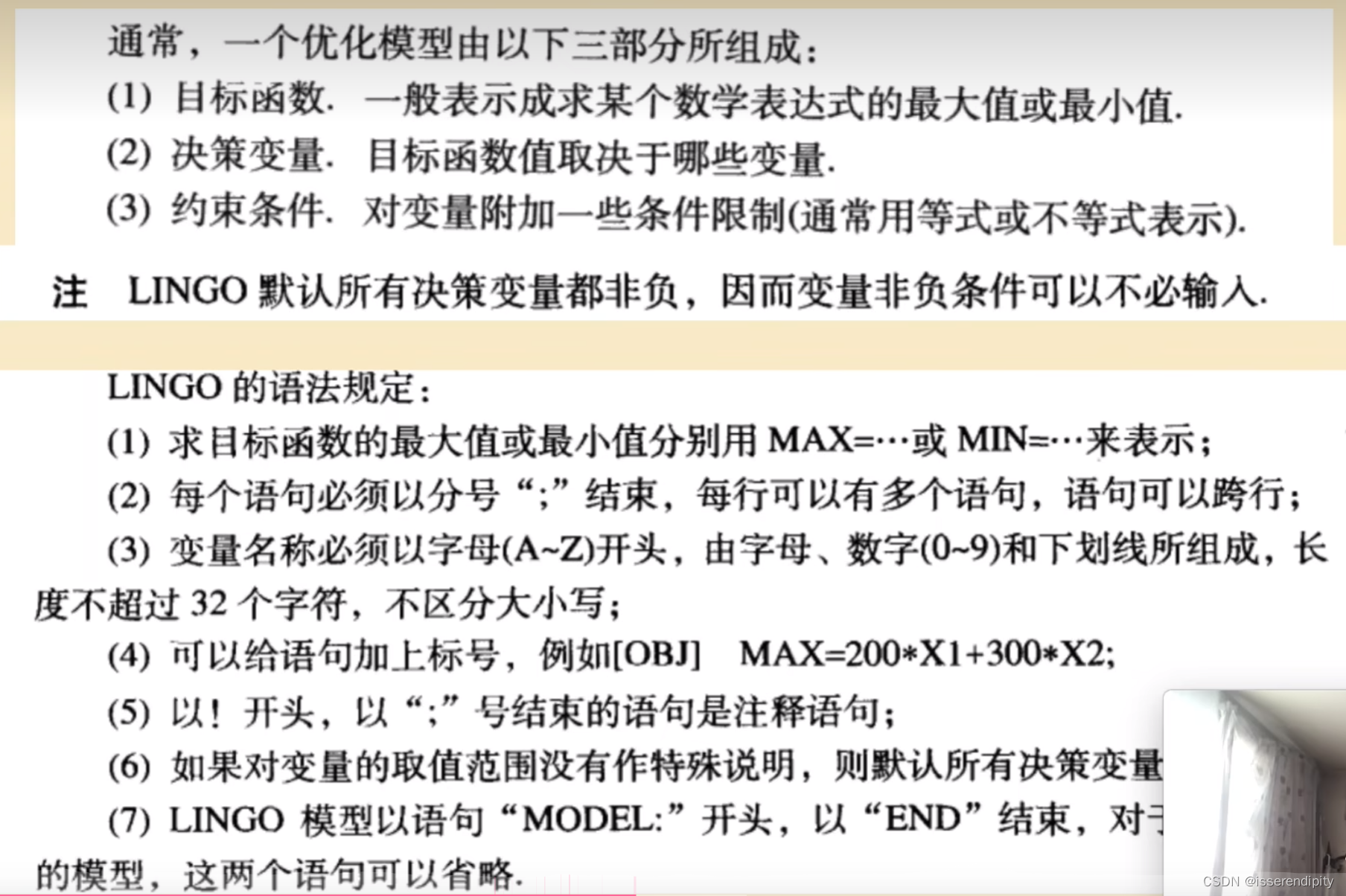 【【数模常用软件Lingo教程】O奖讲解数模规划问题利器Lingo一小时速成】https://www.bilibili.com/video/BV17T4y1K7sL?p=3&vd_source=1e49cb28b33d3c8796cd2de6b1d560d9