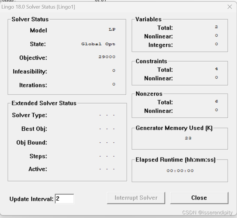 这个界面我们看这个图,来自这位大佬的解释 LINGO语法及软件操作_infinite_with的博客-CSDN博客