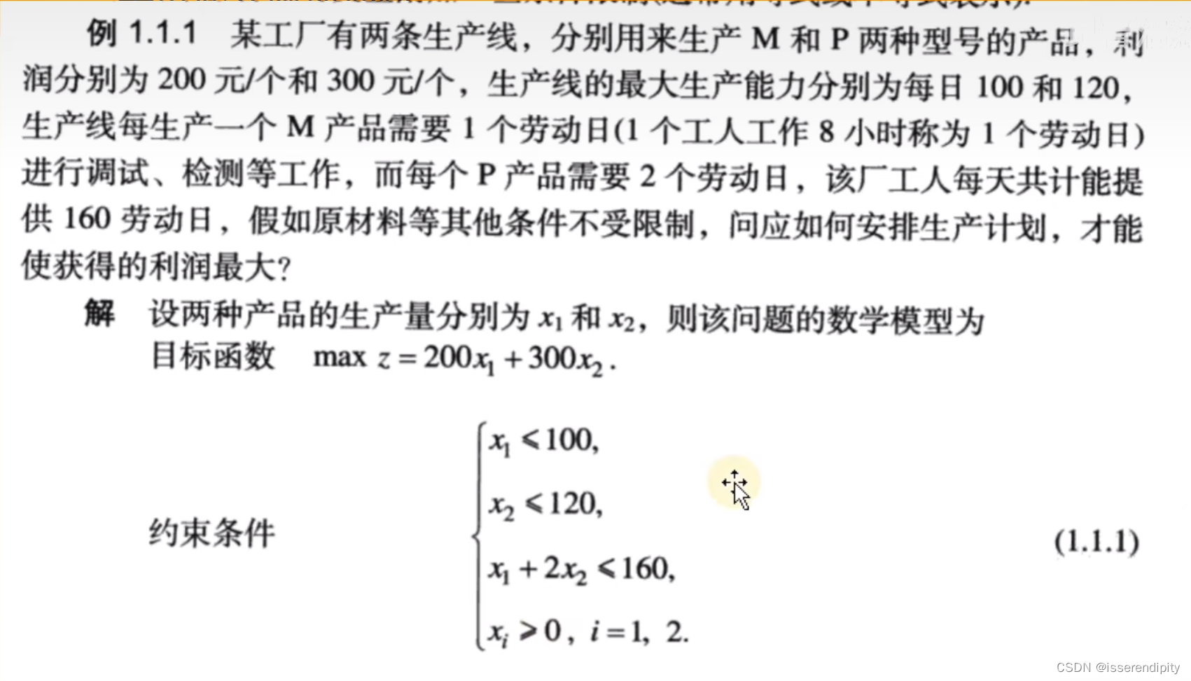 行数开始是从model 求目标值函数开始,即max=200*x1+300*x2;