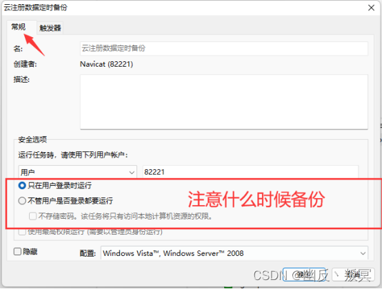 之前一个放在云端的一个工具小软件,被勒索病毒攻击,导致其数据丢失,又不想在投入过多人力在里,采取了修改了数据库密码、端口和通过 Navicat 定时备份的方式的简单处理,这里对 Navicat 的定时备份进行记录一下...