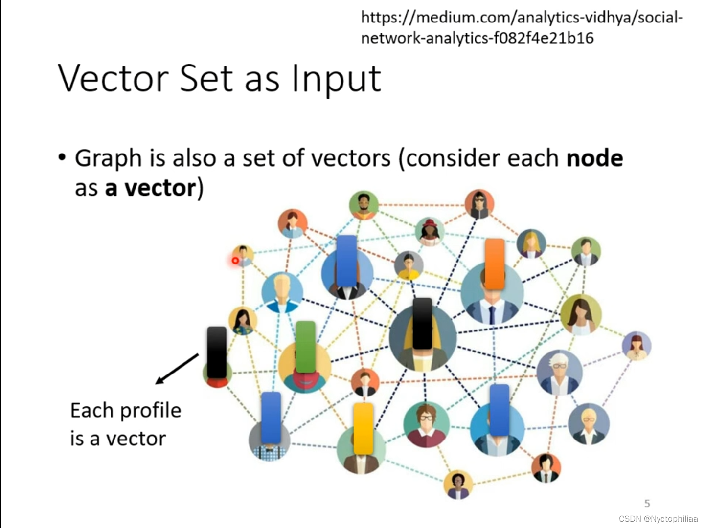 一个图也是一堆向量,如下图所示,每一个结点(图中的人头)可以用一个向量表示。