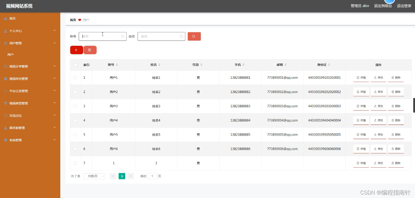 管理员管理用户信息,可以添加,修改,删除用户信息信息。下图就是用户信息管理页面。