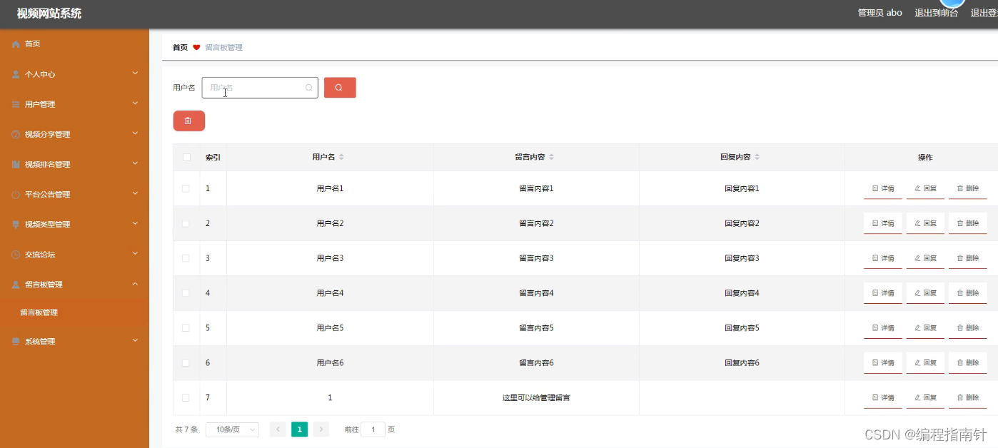 管理员管理留言板,可以添加,修改,删除留言板信息。下图就是留言板管理页面。